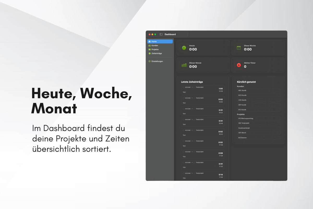 Alle Zeiten, Kunden und Projekte auf einen Blick.